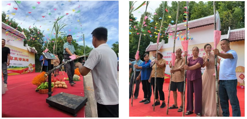 活動現場的文藝演出和趣味比拼豐富多樣、亮點紛呈,既有彩調藝術,也有活力四射的歌舞表演,更有獨具特色的果蔬走秀,引得現場觀眾陣陣喝彩。甘蔗比拼將種蔗能手齊聚一堂,他們展示著粗壯挺直的甘蔗,分享科學種蔗管蔗的經驗。
