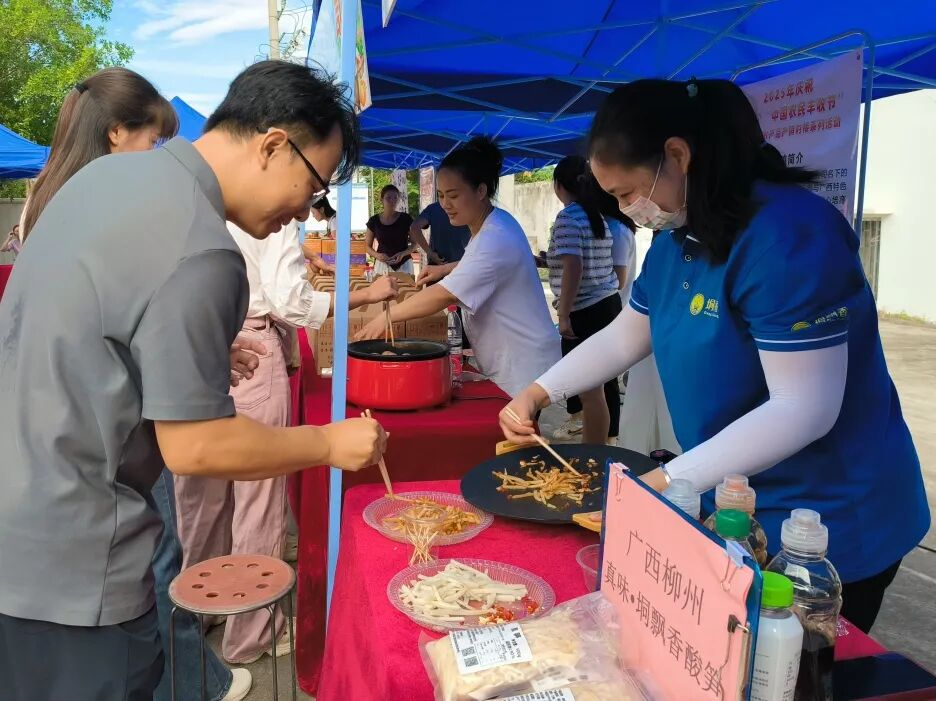 農產品展銷區里,龍卜糯玉米、上垌非遺煮螺、真味酸筍、垌蜜純土蜂蜜、洛沙食用菌、墾村鳳香雞蛋等沙塘特色產品琳瑯滿目,吸引眾多觀眾品嘗、購買,感受“從田間到舌尖”的豐收喜悅。